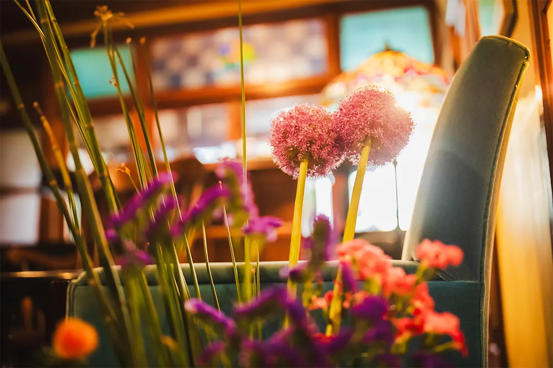 [Hachisei] The interior is decorated with ikebana by the proprietress