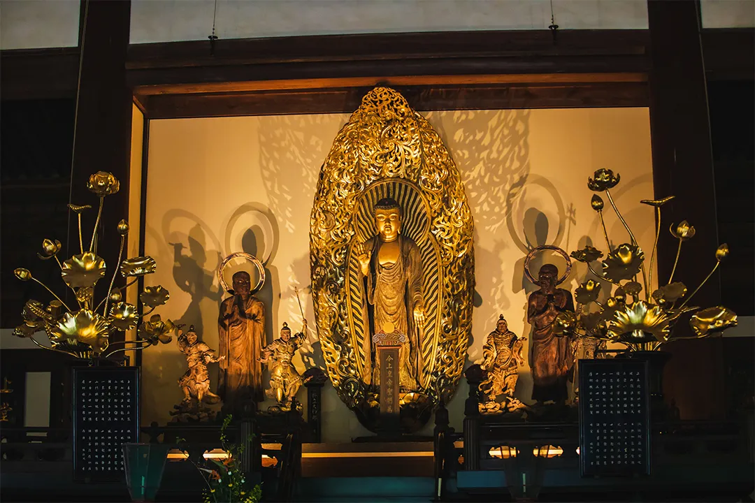 [Tofukuji] Paying respects to the principal image; see the golden Buddhist flowers from which ikebana originates
