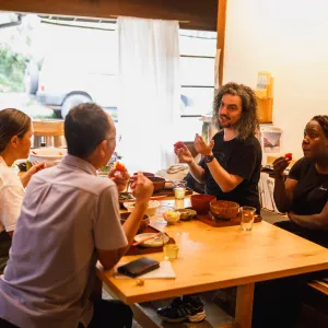 Your journey starts from Hatacho and takes you through the captivating countryside on comfortable electric bicycles to your first stop, the charming townhouse “FARMHOUSE Kehare”. After harvesting the seasonal vegetables from the fields next to the house, you will prepare a delicious traditional local meal together with the farmers. After the meal the journey continues to the Shakubuji Temple, renowned for its stunning maple leaves in autumn. Here you will have a chance to experience both the local religion as well as learn about its long history. As the final step of your journey you will have the opportunity to try the traditional bamboo crafts and thatching techniques, both passed down through generations and currently kept alive by experienced master craftsmen who will be more than happy to share the secrets of their crafts with you.