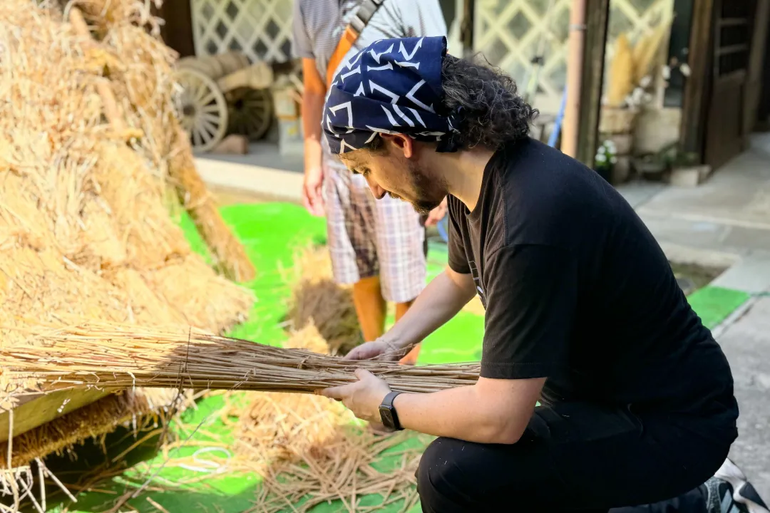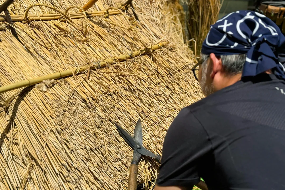 Thatching experience with an artisan in the Kita Ward of Kobe, famous for thatched roofs