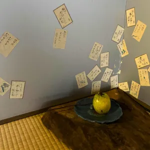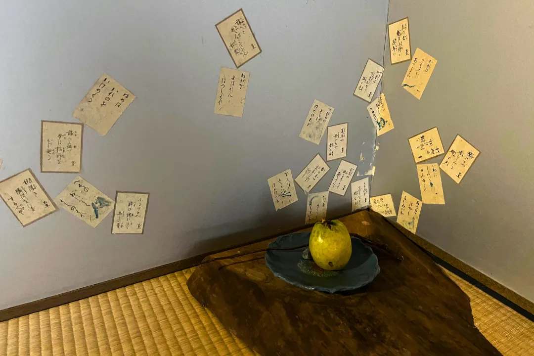 ”Mecca of haiku, Rakushisha”Haiku poems on the wall create a stylish space.