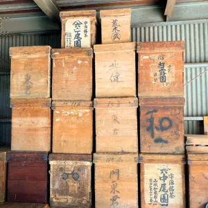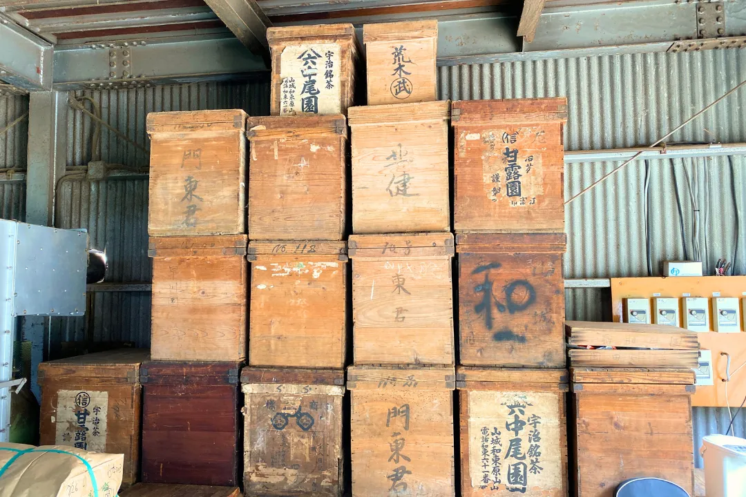 【製茶工場】昔ながらの茶葉保管箱に歴史を感じる