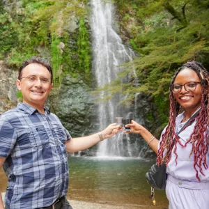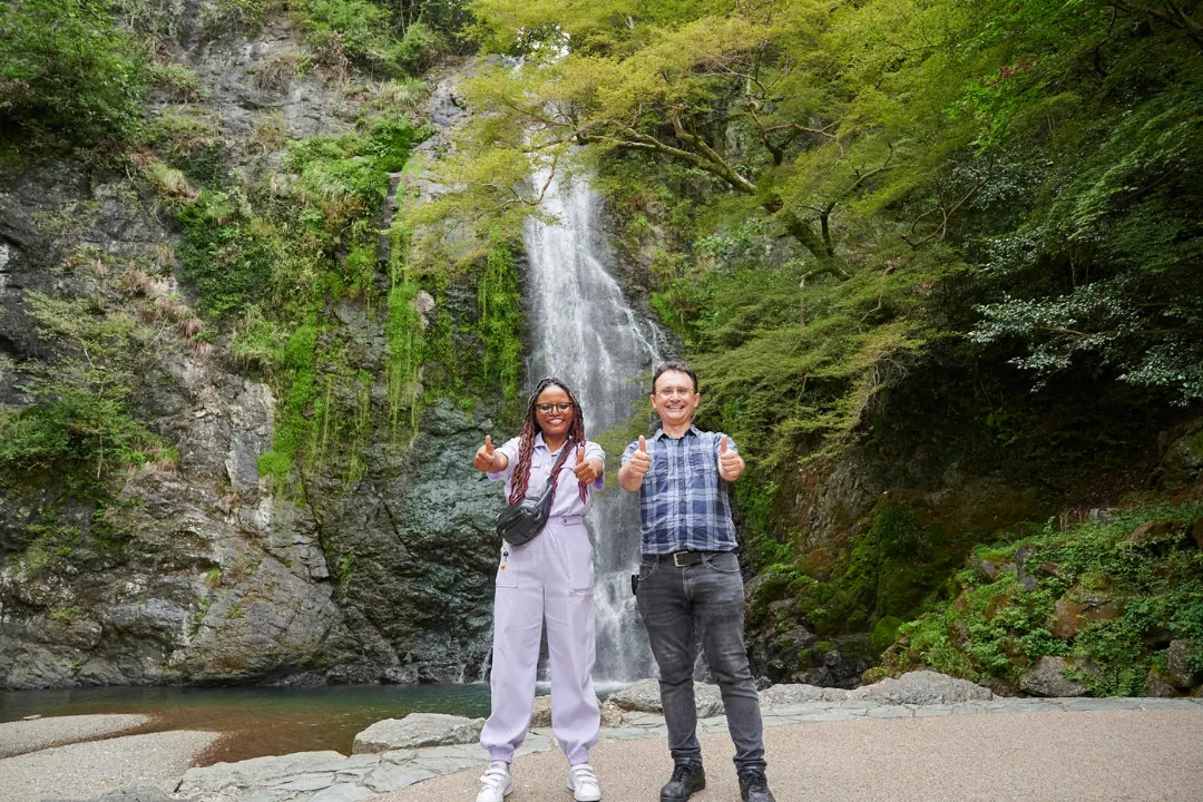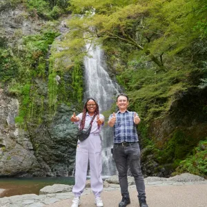【箕面大滝】マイナスイオンたっぷりの、箕面大滝の前で「はい、ポーズ!」