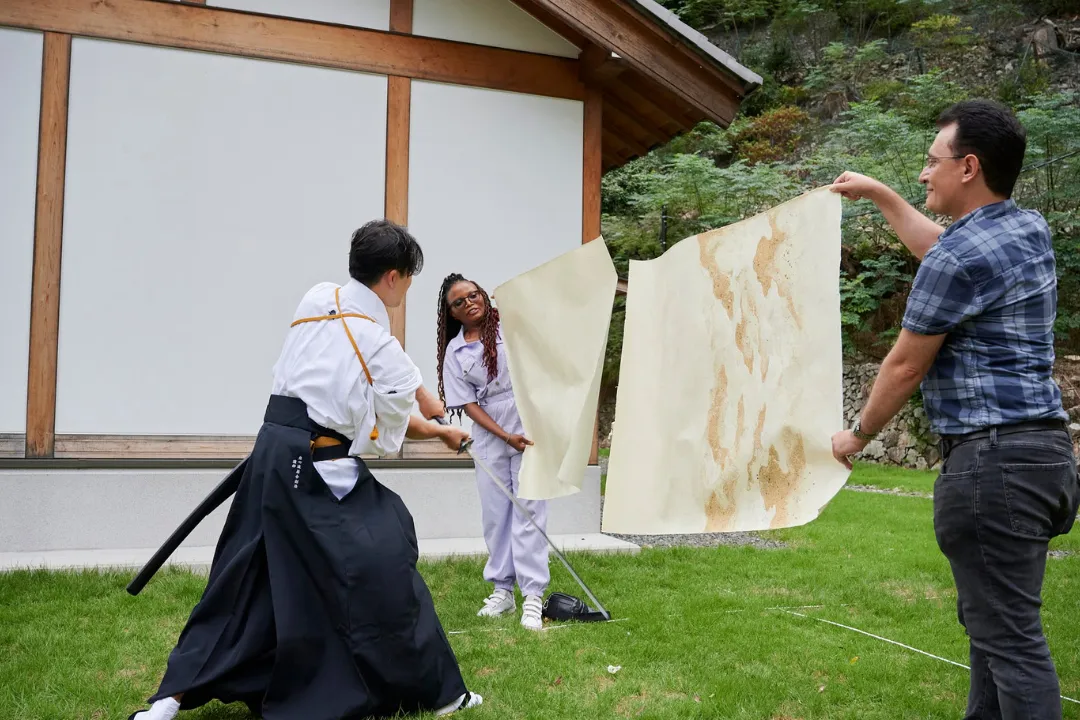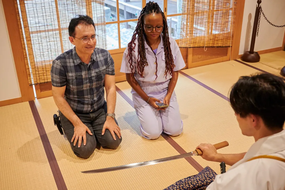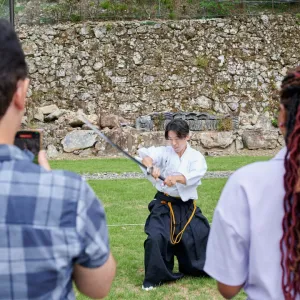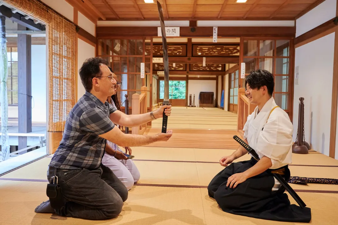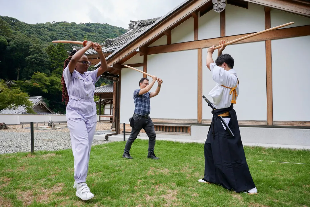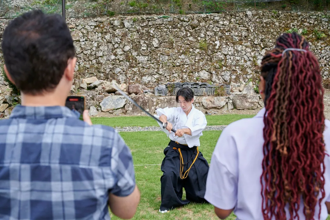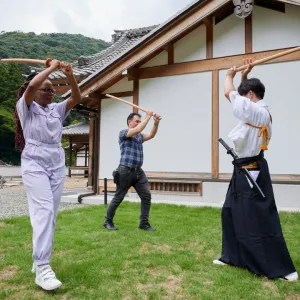 - 瀧安寺の立ち入り禁止区域で、当ツアー限定の剣術体験