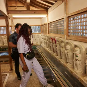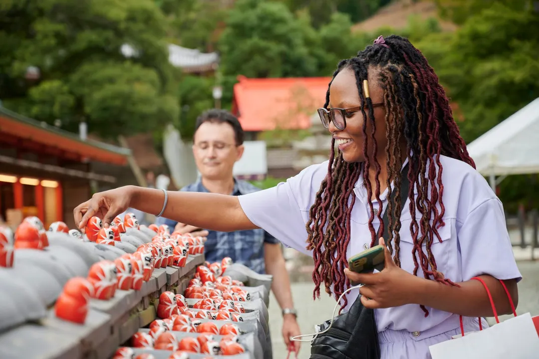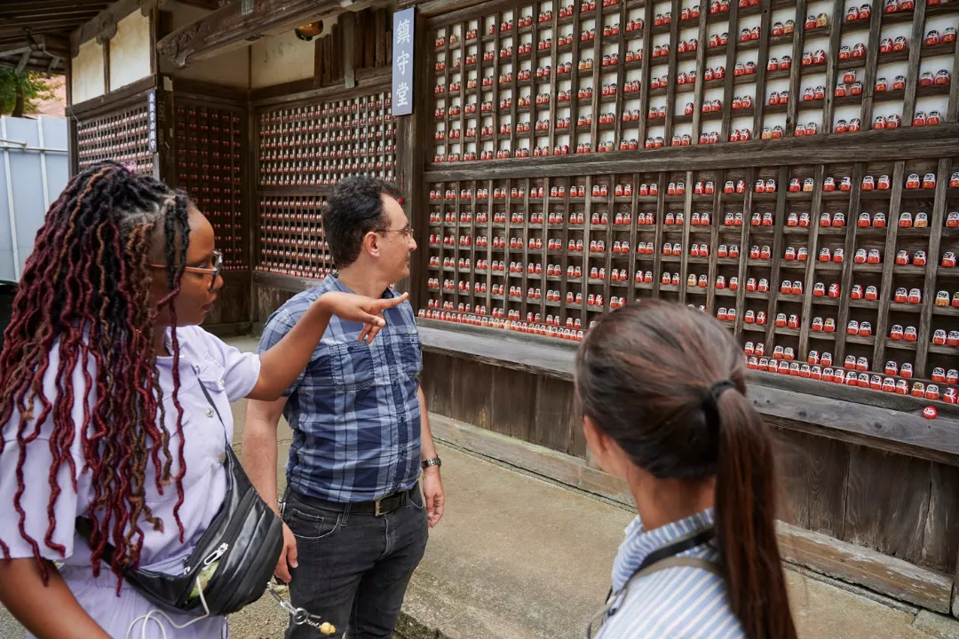・人々の想いがこもった愛らしいだるまに囲まれた、勝尾寺の境内で行う自己と対峙する祈りの体験