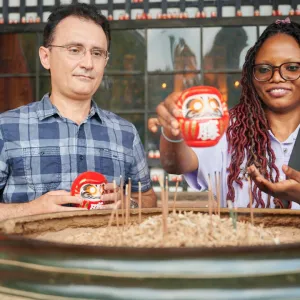 【勝尾寺】おみくじのだるまを好きに並べて、参加型で行われる勝尾寺の景観作り