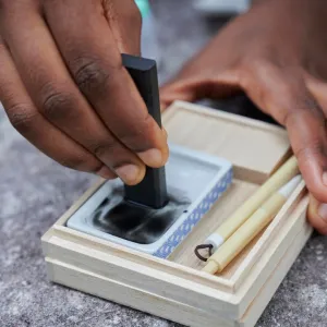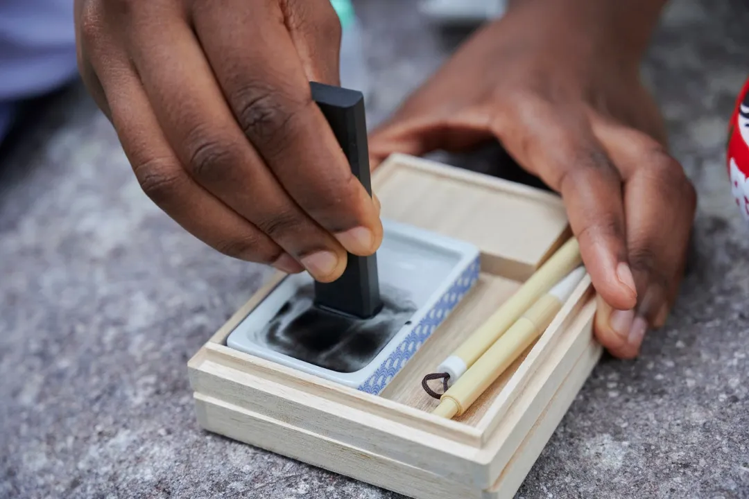 【勝尾寺】静かに墨を摺ることに集中。心を落ち着かせる大切な時間