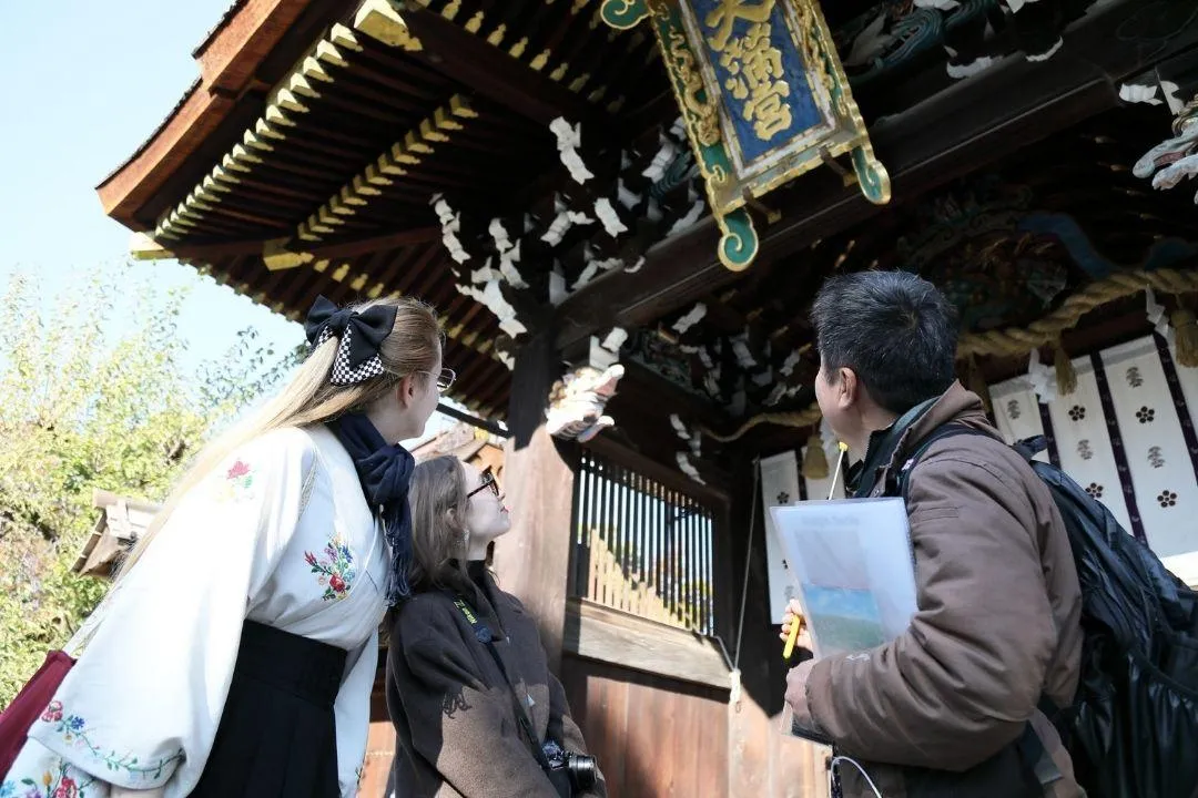 [Kitano Tenmangu] A knowledgeable guide will introduce you to the secrets of Sankomon