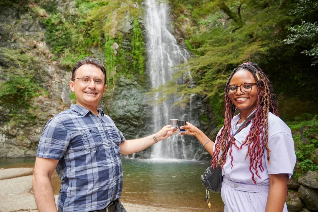 ・A peaceful tea meditation in front of the 33-meter-high Minoh Great Falls