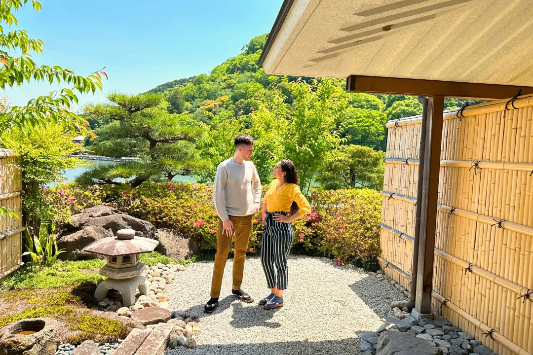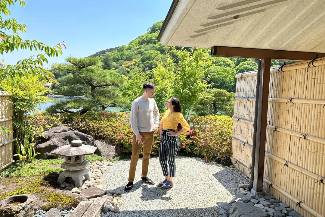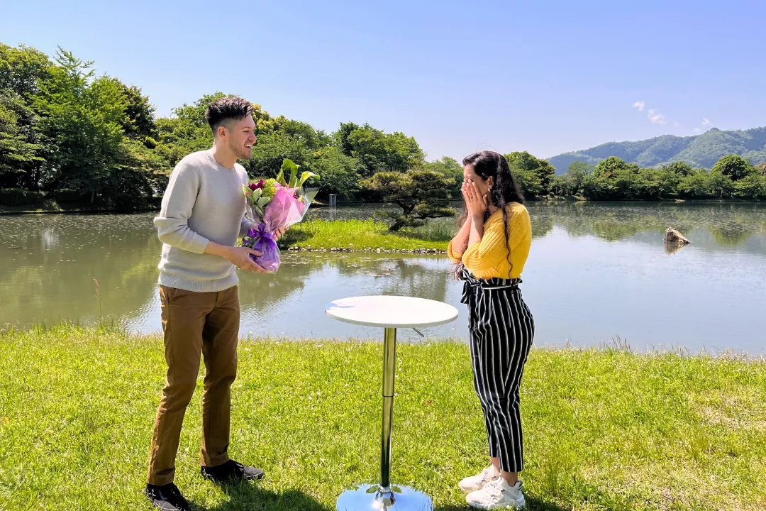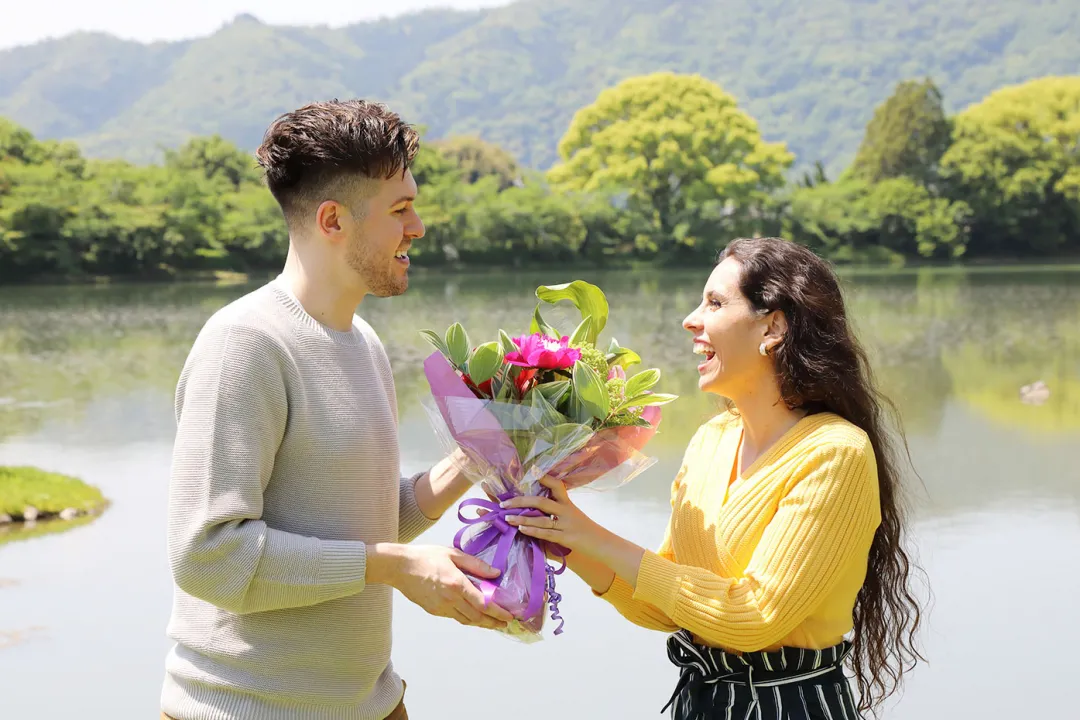 在這神聖的地方體驗僧侶的日常生活,透過非日常的體驗更能加深兩人的感情。最後在美景與周長約1公里的庭院池塘獻上花束。用一束鮮花向您的伴侶表達謝意和對未來的承諾,加深與重要伴侶的羈絆。