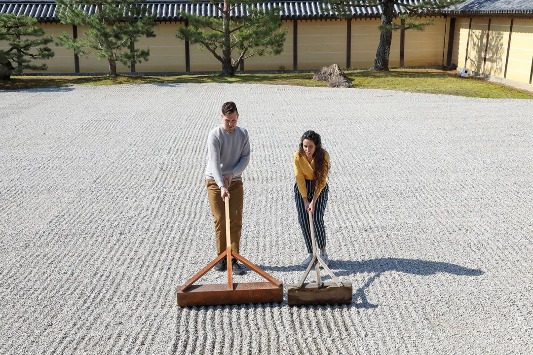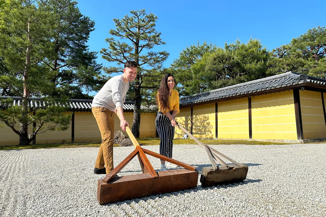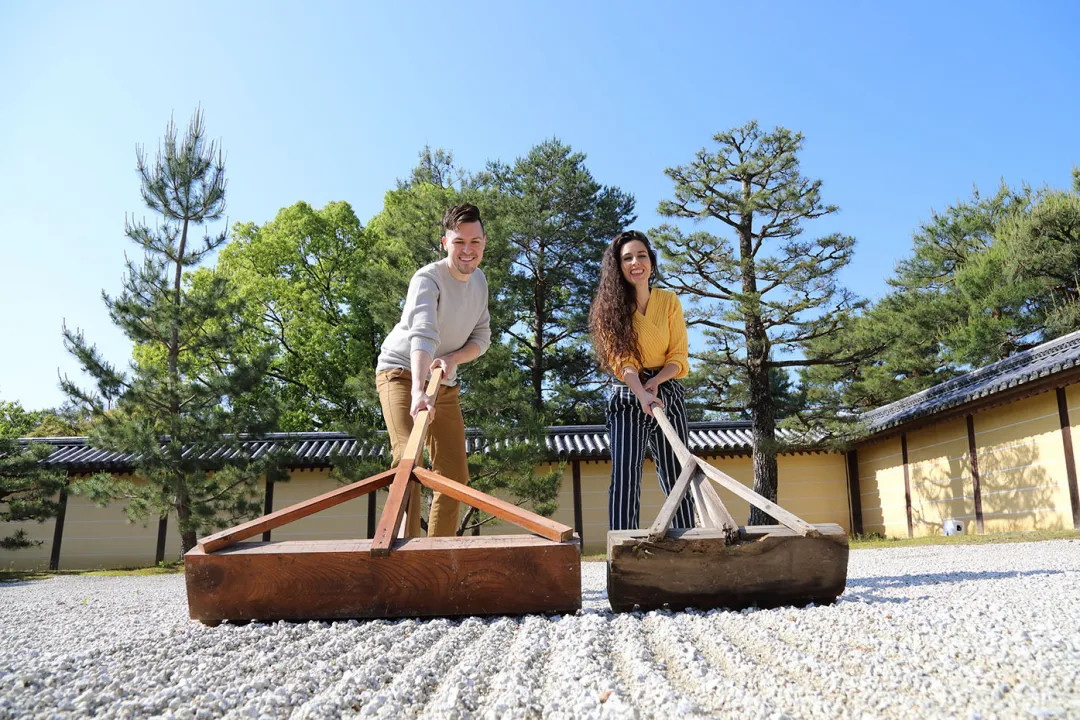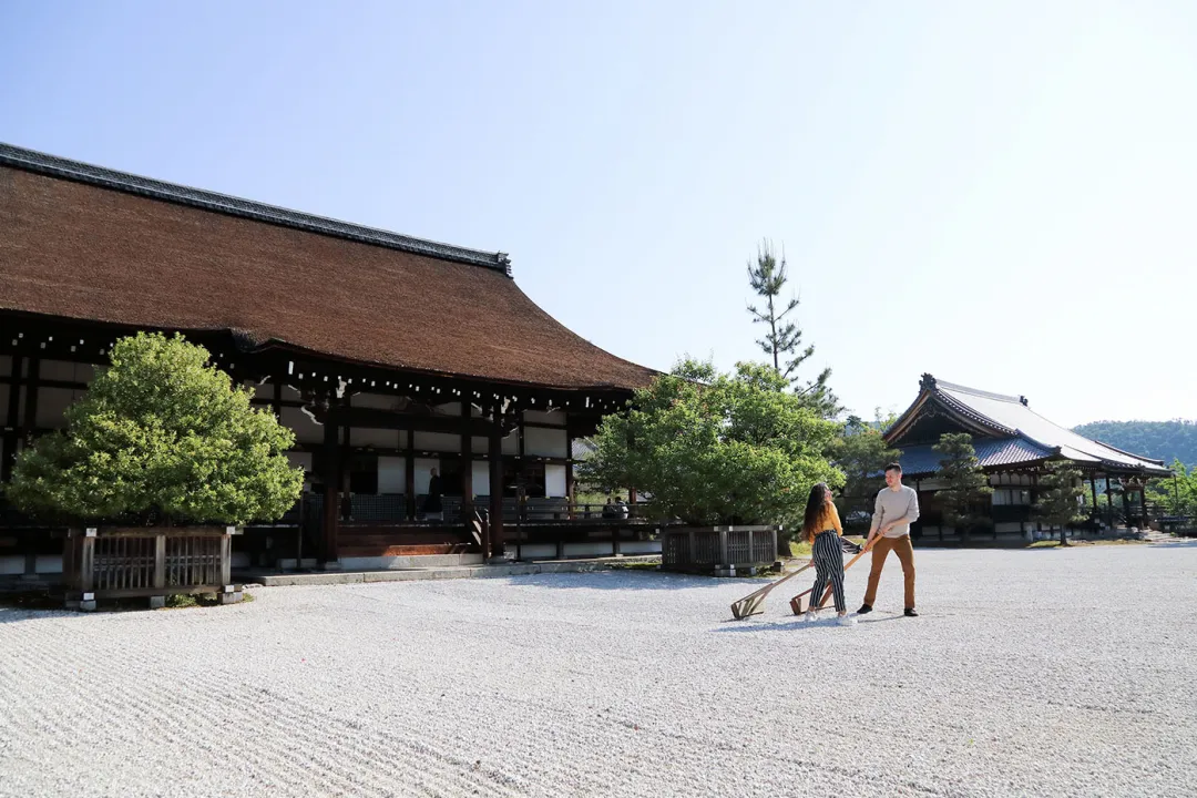 【宸殿】在平常禁止進入的庭園裡製作砂紋體驗